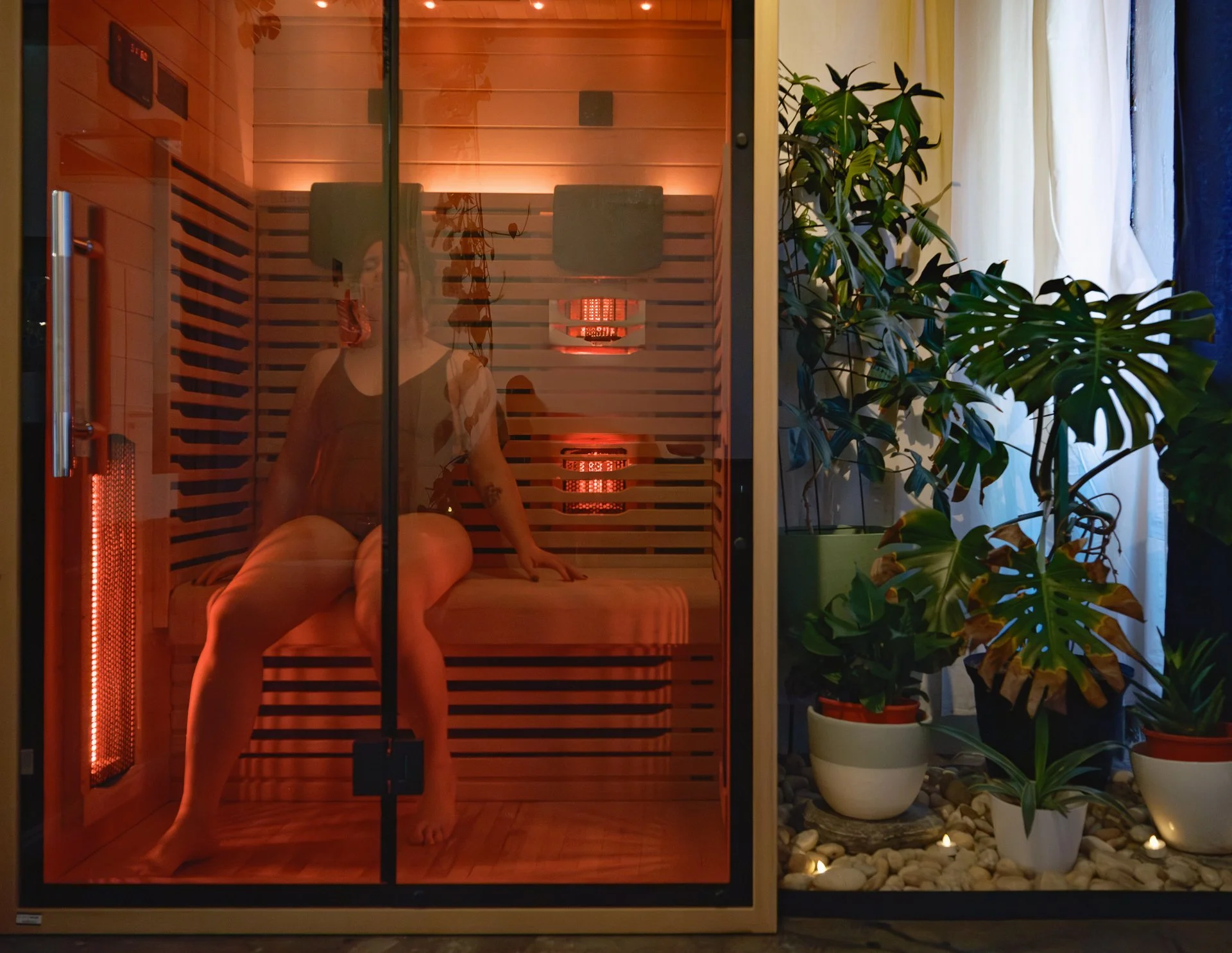An infrared sauna is a type of sauna that uses light to make heat. This type of sauna is sometimes called a far-infrared sauna. "Far" describes where the infrared waves fall on the light spectrum. A regular sauna uses heat to warm the air, which in turn warms your body. An infrared sauna heats your body directly without warming the air around you. These saunas have been linked to a number of studies that help alleviate symptoms for conditions like high blood pressure, arthritis, diabetes, and headaches.